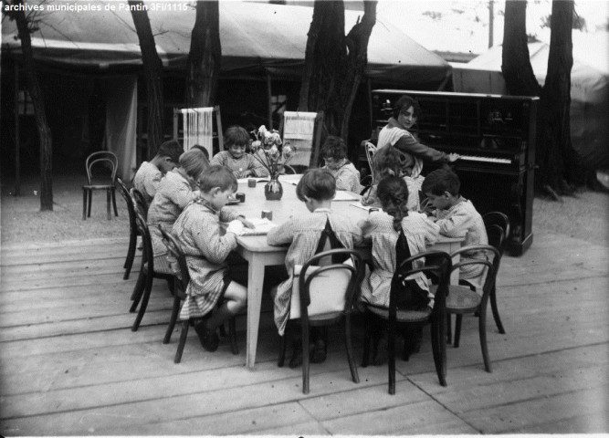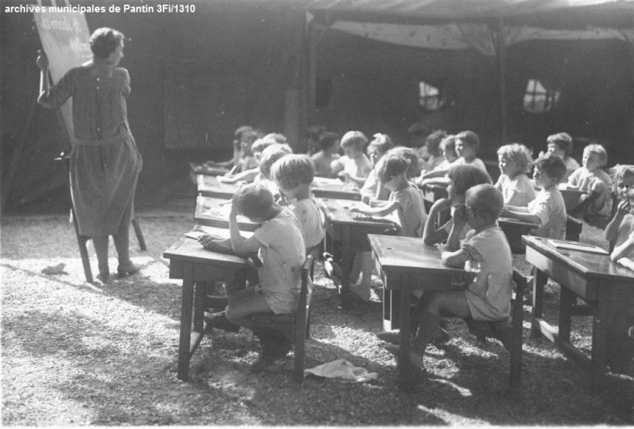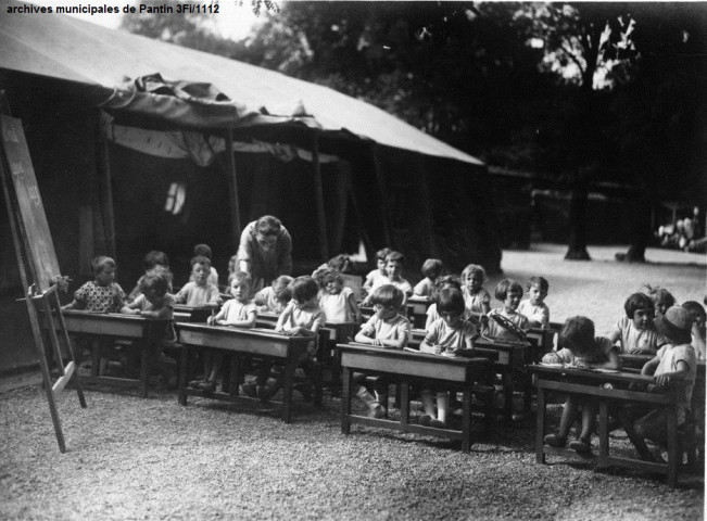 Au début du XXe siècle, de nouveaux types d'établissements scolaires sont préconisés pour faire face au développement croissant de la tuberculose. Dans ce contexte, la municipalité de Pantin ouvre dès le printemps 1923, une école de plein air sur le site du parc de la Seigneurie. Elle consiste en deux tentes Bessoneau et une baraque pour la cuisine. Cette école, qui fonctionne de mai à octobre, reçoit 60 tout-petits choisis par les médecins inspecteurs parmi les enfants les plus chétifs des quatre écoles maternelles de la ville. L'effectif estival monte rapidement à 150 élèves. Elle est ainsi, bien avant le modèle de Suresnes, la première école de plein air de la Seine.