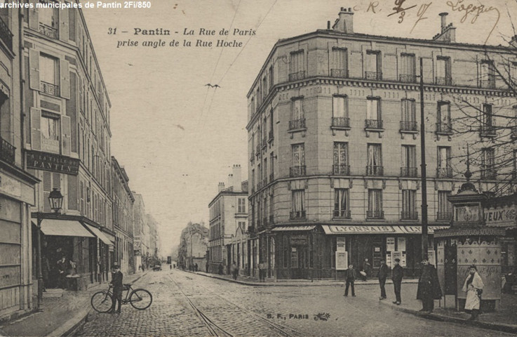31. Pantin - La rue de Paris prise angle de la rue Hoche (Crédit lyonnais, tramway, vespasienne).