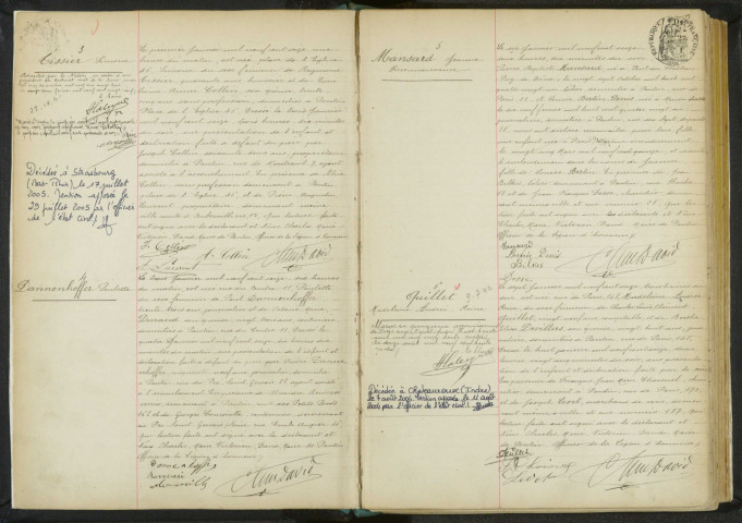 On peut noter la présence de registres des divorces pour les années 1793-1794 et 1797-1802.